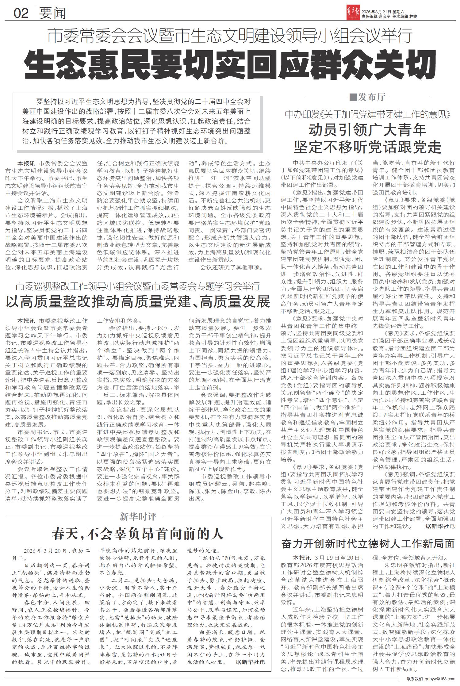 A01 头版 A02 要闻 A03 青年 A04 都市 A05 青年 A06 文化 A07 国际 A08 最美高校辅导员
