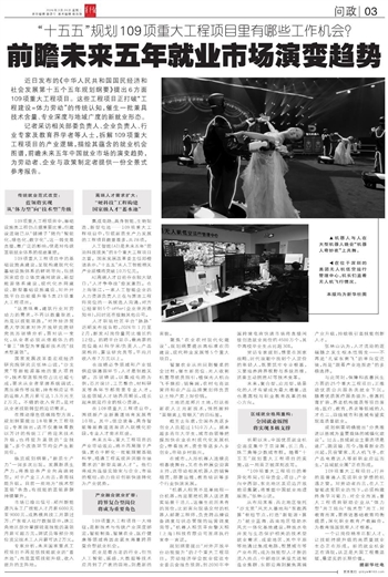 记者采访相关部委负责人、企业负责人、行业专家及教育界学者等人士,拆解109项重大工程项目的产业逻辑,描绘其蕴含的就业机会图谱,前瞻未来五年中国就业市场的演变趋势,为劳动者、企业与政策制定者提供一份全景式参考报告。