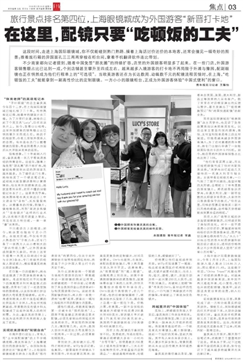 为什么游客会将一个眼镜市场视作旅游目的地?答案藏在这一副眼镜的购买过程里。在眼镜城的一个柜台前,记者遇到了来自美国旧金山的游客Willy和英国游客Chris。说起在本国配镜的经历,两人你一言我一语地“吐槽”起来,拼凑出一幅与上海截然不同的配镜生活图景。