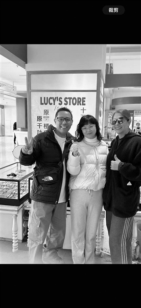 ❷外国顾客和童庆英的合影。