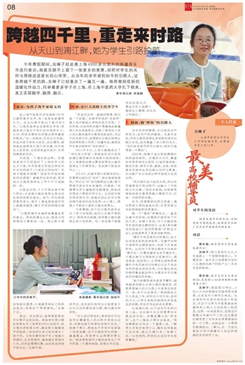 今年寒假期间,关琳子赶赴离上海4300多公里外的新疆库车市进行家访,她甚至顾不上留下一张家乡的美景,却把对学生的关怀与照顾送进家长的心坎里。从当年的求学者到如今的引路人,这条跨越千里的路,关琳子已经重走了一遍又一遍。她将曾经收获的温暖化作动力,托举着更多学子在上海、在上海中医药大学扎下根来,真正实现融学、融居、融乐。 青年报记者 张逸麟