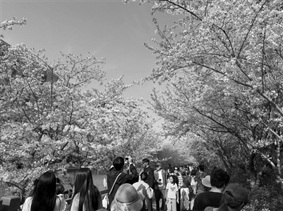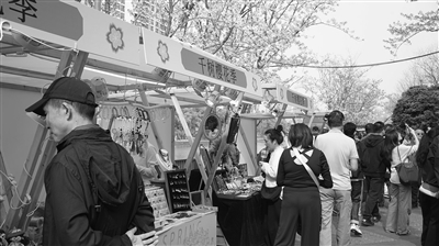 天安千树“千树樱花季”市集吸引了不少中外游客。