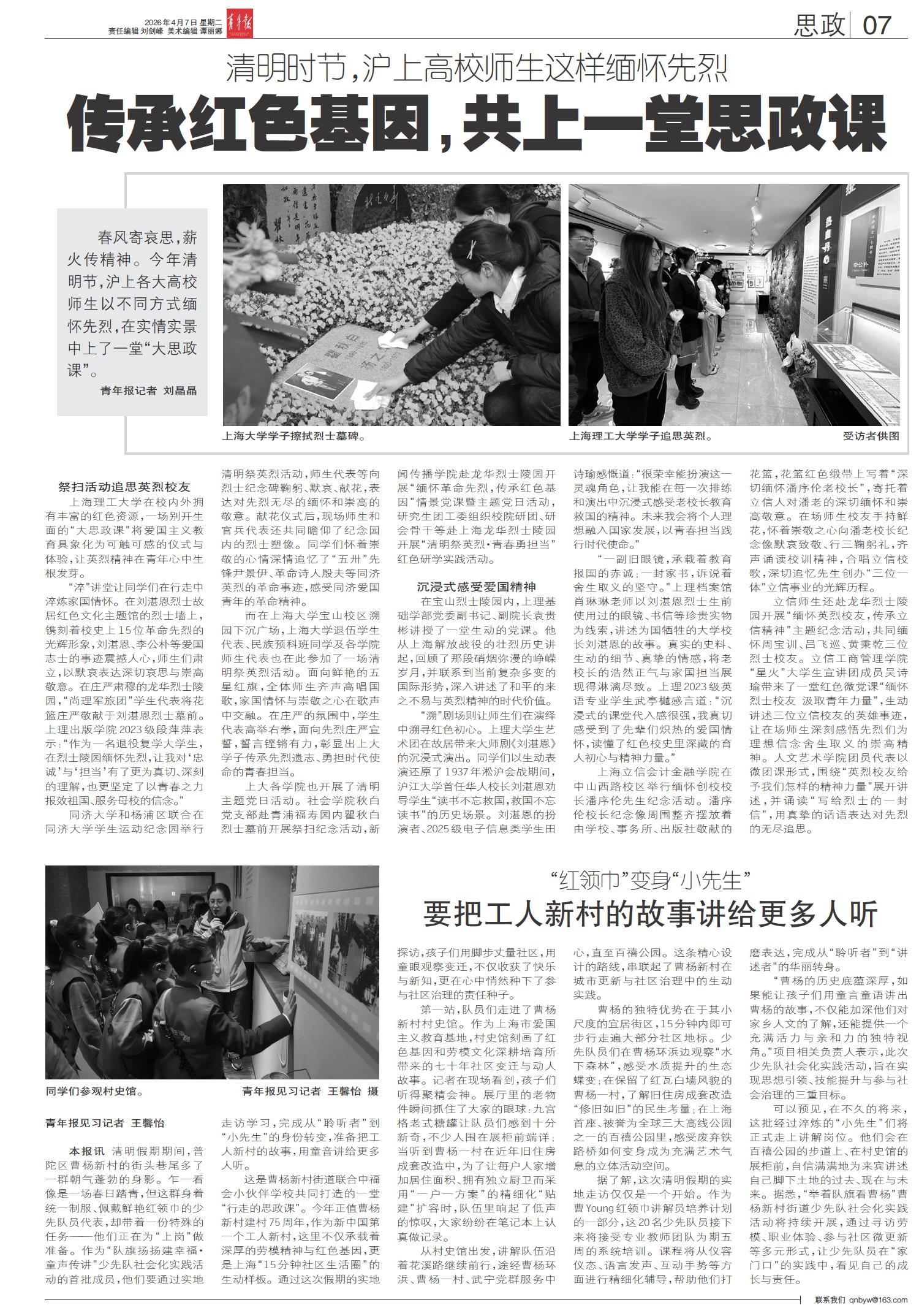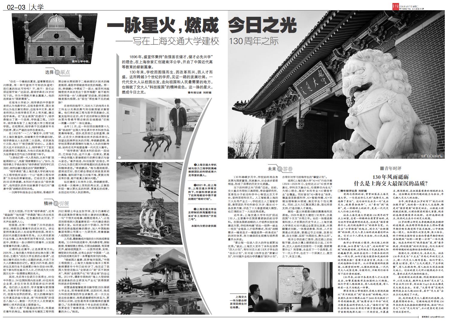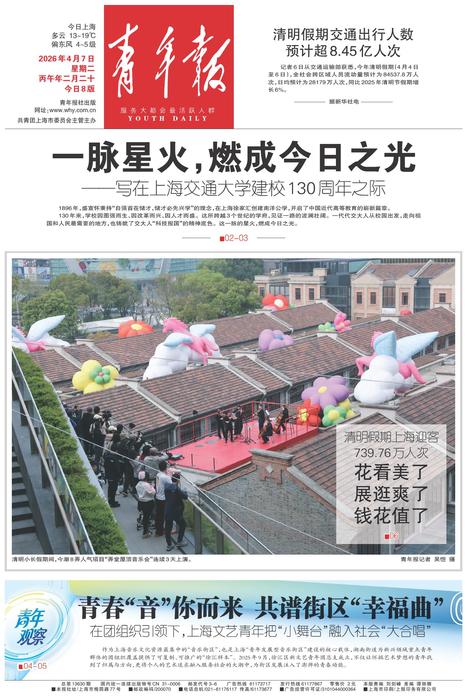 A01 头版 A02 大学 A04 青年观察 A06 都市 A07 思政 A08 文化