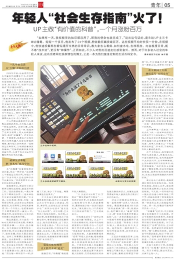 “如果有一天,我视频里的知识都没用了,那我的使命也就完成了。”说出这句话的,是B站UP主兰卡 @咕噜耄。短短一个多月,他发布了24个视频,粉丝数狂飙突破百万。这些视频平均时长仅一分钟,在视频中,他快速拆解那些看似理所当然的日常常识,教大家怎么看病、如何查水电、怎样租房。内容极度日常,既不卷“技术流”,更没有“神操作”,正因如此,不少人对他的迅速走红感到意外。然而,对于许多初入社会的年轻人来说,这名顶着网红猫表情包的博主,正是一本为他们量身定制的生活百科全书。青年报见习记者 林千惠