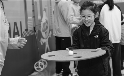 小朋友在乒乓球嘉年华参与互动游戏。本版摄影 青年报记者 吴恺