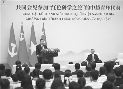 苏林表示,“红色研学之旅”启动一年来,上千名越南青年沿着老一辈领导人足迹参访在中国的红色遗址,体悟两国的革命传统和深厚友谊。青年是越中两党两国关系的重要桥梁,希望两国青年进一步坚定理想信念,提高政治本领,掌握科学知识,深化对越中关系的认识,为各自国家发展和两国友好发挥重要作用。