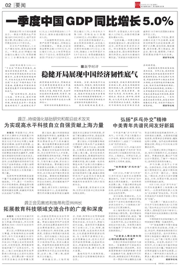 “总的来看,一季度主要宏观指标增速回升,新动能快速成长,国民经济实现良好开局。但也要看到,外部形势更加复杂多变,国内供强需弱矛盾仍然突出,经济向好基础仍需巩固。”国家统计局副局长毛盛勇在16日举行的国新办新闻发布会上说。