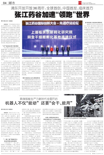 本报讯 今天是浦东开发开放36周年纪念日。36年来,浦东生物医药产业发展不断向高能级转变,诸多“全球首创”在此诞生。4月17日,在张江科学会堂举办的张江药谷国际创新大会·先进疗法论坛暨2026上海干细胞产业大会主论坛上,又有一批前沿成果、创新举措集中发布,助力张江药谷加快建设成为“全球创新药械首发地、科学家创业首选地、制度改革首创地”。