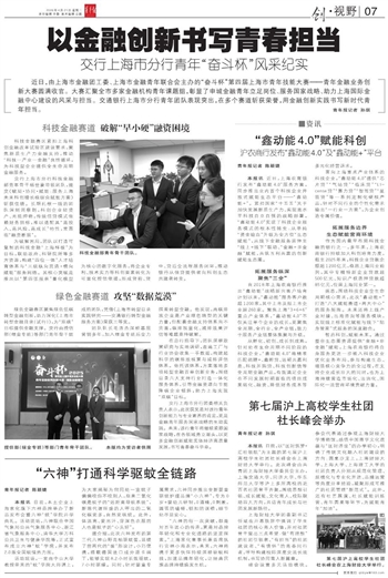 近日,由上海市金融团工委、上海市金融青年联合会主办的“奋斗杯”第四届上海市青年技能大赛——青年金融业务创新大赛圆满收官。大赛汇聚全市多家金融机构青年课题组,彰显了申城金融青年立足岗位、服务国家战略、助力上海国际金融中心建设的风采与担当。交通银行上海市分行青年团队表现突出,在多个赛道斩获荣誉,用金融创新实践书写新时代青年担当。青年报记者 孙琪