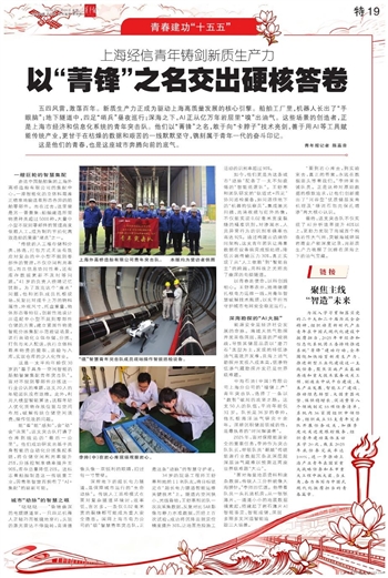 五四风雷,激荡百年。新质生产力正成为驱动上海高质量发展的核心引擎。船舶工厂里,机器人长出了“手眼脑”;地下隧道中,四足“哨兵”昼夜巡行;深海之下,AI正从亿万年岩层里“嗅”出油气。这些场景的创造者,正是上海市经济和信息化系统的青年突击队。他们以“菁锋”之名,敢于向“卡脖子”技术亮剑,善于用AI等工具赋能传统产业,更甘于在枯燥的数据和艰苦的一线默默坚守,镌刻属于青年一代的奋斗印记。