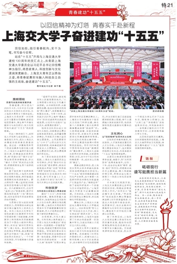 建功“十五五”,科技创新是硬支撑。聚焦国家重大战略需求,加强科技自主创新和人才自主培养,遵照回信的殷殷叮嘱,上海交大共青团将带领青年学子继续勇攀科研创新高峰,在人才培养的征程上留下鲜明的青春印记。