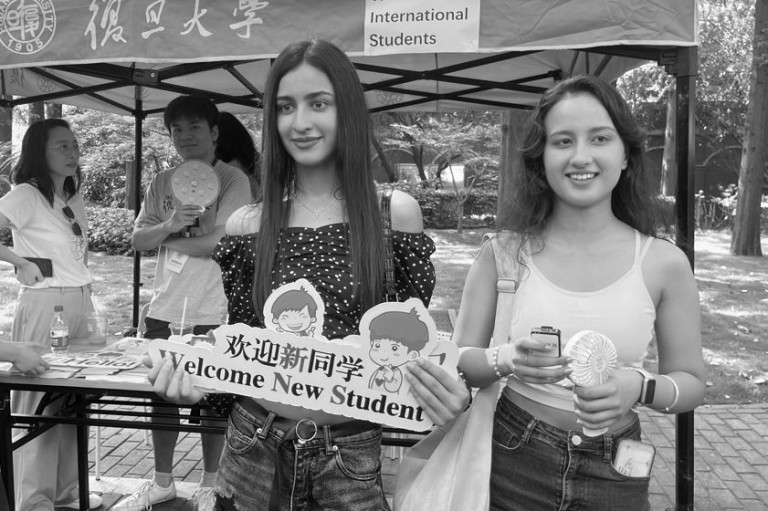 来自巴基斯坦的宁月是一名留学生,她于2021年来到复旦大学,开启5年制的医学专业学习。比她小3岁的妹妹宁雪在姐姐不断安利下,今年也正式成为复旦新生,将投身国际政治专业的学习。
