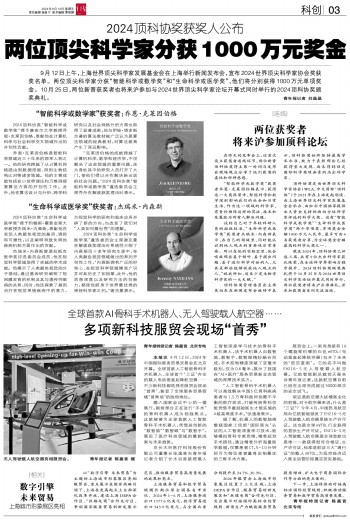 两位获奖科学家十月将来沪出席顶科论坛