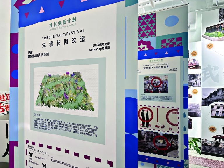 作为“社区焕新计划”负责方,社趣更馨营造中心主理人许引兰介绍,武夷路街区更新过程中,社区焕新展所在地武夷路295号就被定义为城市会客厅,在2022年至2024年期间,每年在武夷华阳片区都会发起社区焕新计划,联合东华大学、同济大学、上海大学等多所高校,邀约感兴趣的大学生,走到街区、走进社区,通过调研和思考,对社区提出建设性的想法或是提案。“在这个过程当中,我们每一年会产出一部分的提案作品,然后再从这些提案创意设计中推动最终的落地。”