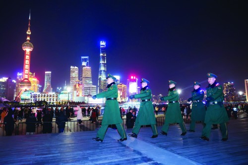 每一份付出都弥足珍贵 2024年12月31日,武警上海总队机动第一支队执勤官兵在外滩观景平台执勤。新华社 图