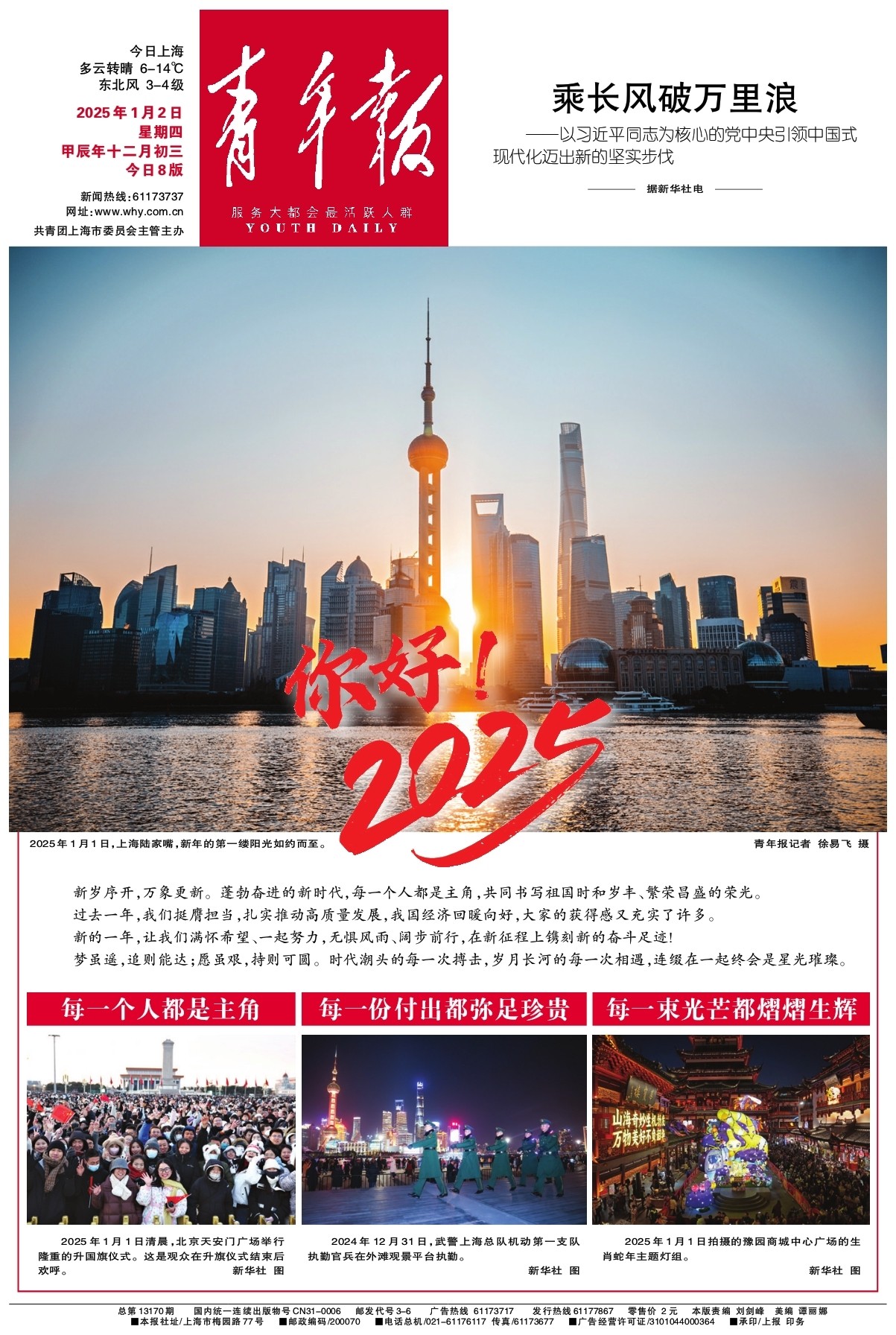 2025年1月1日,上海陆家嘴,新年的第一缕阳光如约而至。青年报记者 徐易飞 摄