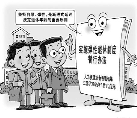 1月1日,人力资源社会保障部等三部门发布《实施弹性退休制度暂行办法》,就弹性退休的办理程序、基本养老金领取等方面作出明确规定。