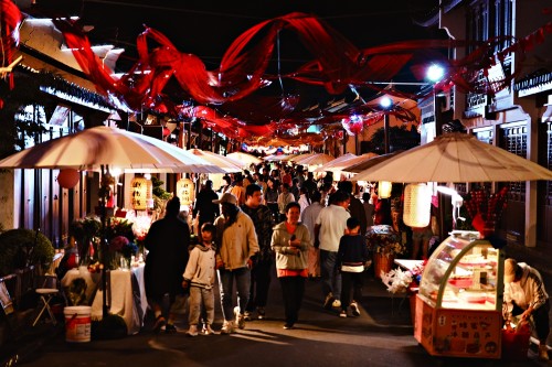 门,不仅承载着古老醇厚的年味,还生动展现着当代生活的烟火气息。街边两侧,中式花窗木门静静伫立,繁复精美的雕刻低声诉说着古镇悠悠岁月里的点点滴滴。而一尺花园那玻璃材质的平移式感应门,在人们靠近的瞬间,便灵敏开启,清晰折射出现代生活的便捷与高效。安方塔那镶着石狮头的高大院门,历经岁月洗礼,轻掩着一段段尘封的历史故事。不远处,善物咖啡厅的木门上挂着牌匾,从店内吹出的暖风裹挟着咖啡的香气。这扇门里,是游客在古镇游走后的一处歇脚地。