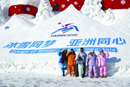 时隔近30年,哈尔滨再度与亚冬会结缘。松花江北岸的冰雪大世界里,中国天坛祈年殿遥对新加坡鱼尾狮,印度泰姬陵“遇见”卡塔尔卢塞尔体育场……亚奥理事会成员国家和地区的地标景观,以冰雪之姿与游客见面,一幅冰雪盛会的美丽图卷徐徐展开。