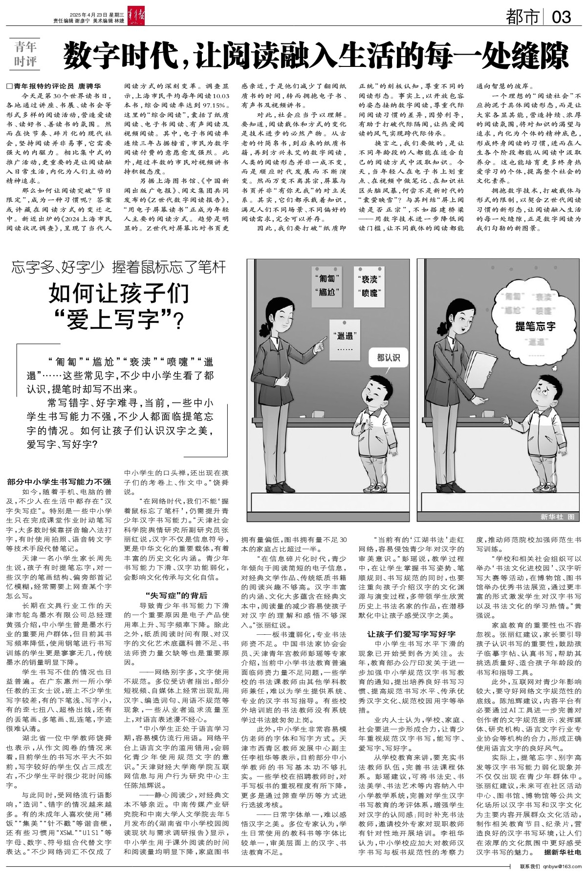 “在网络时代,我们不能‘握着鼠标忘了笔杆’,仍需提升青少年汉字书写能力。”天津社会科学院舆情研究所副研究员张丽红说,汉字不仅是信息符号,更是中华文化的重要载体,有着丰富的历史文化内涵。青少年书写能力下滑、汉字功能弱化,会影响文化传承与文化自信。