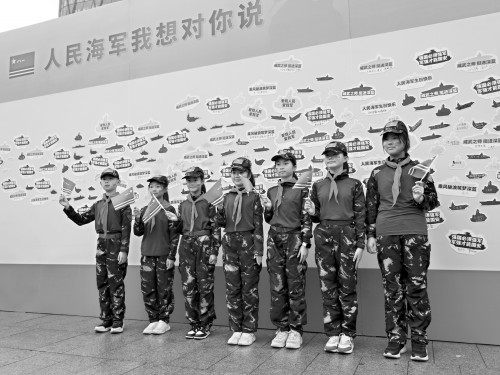 借此机会,7名上海浦东新区东港小学生身着迷彩服,在老师的带领下也登上了舰艇。“太大了!以前我只在电视上的军事频道见过军舰,很早便想过来参观,这次终于实现了。亲眼看到高耸的炮塔感觉装备很先进。”五年级学生孟小希说。