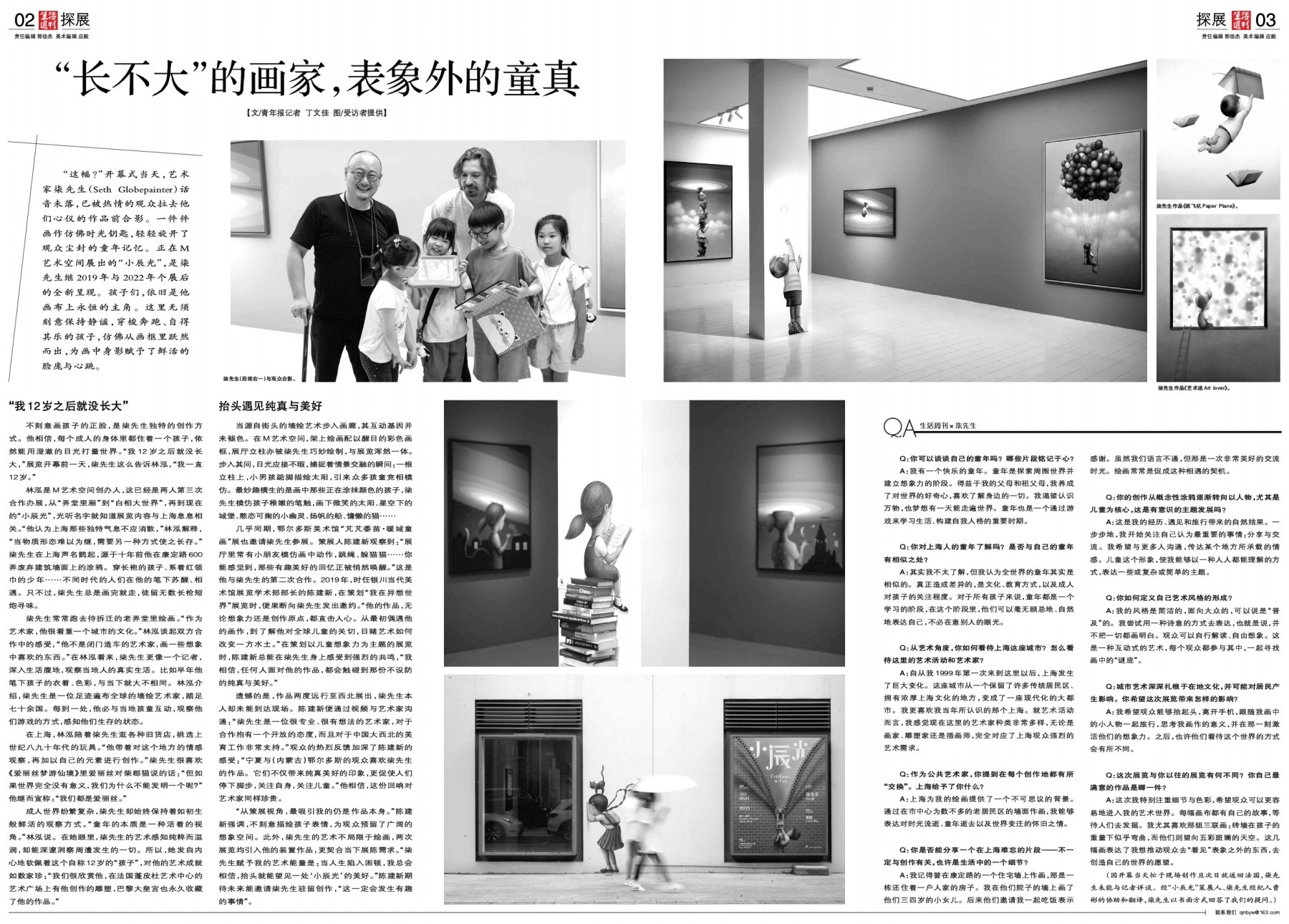 【文/青年报记者 丁文佳 图/受访者提供】 “这幅?”开幕式当天,艺术家柒先生(Seth Globepainter)话音未落,已被热情的观众拉去他们心仪的作品前合影。一件件画作仿佛