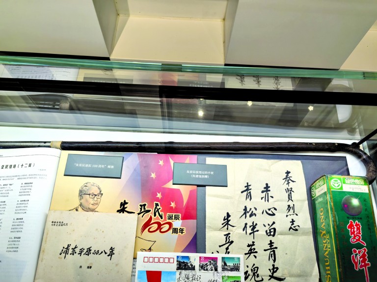 如今,题词和拐杖一起,都被朱建强捐赠给了淞沪支队陈列馆。郭敏也还在继续奔走,为淞沪支队陈列馆梳理更多的史料、收集更多的藏品。