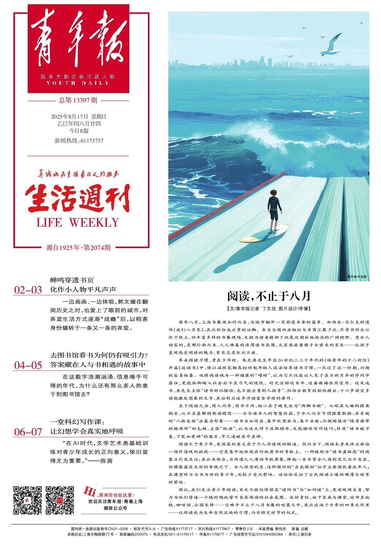 国内统一连续出版物号CN31-0006 邮发代号3-6 广告热线61173717 发行热线61177867 零售价2元