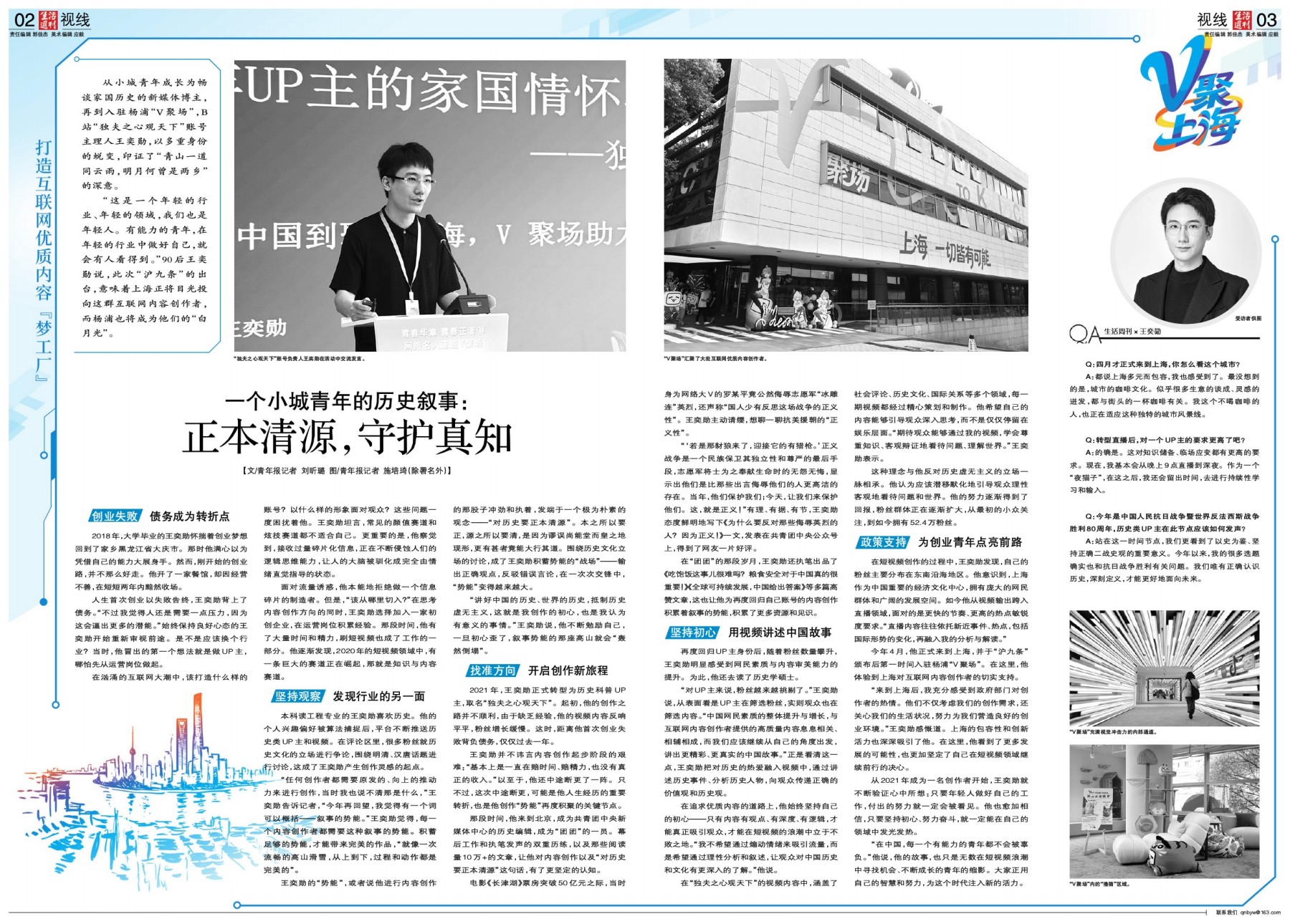 【文/青年报记者 刘昕璐 图/青年报记者 施培琦(除署名外)】 从小城青年成长为畅谈家国历史的新媒体博主,再到入驻杨浦“V聚场”,B站“独夫之心观天下”账号主理人王奕勋,以多重身份