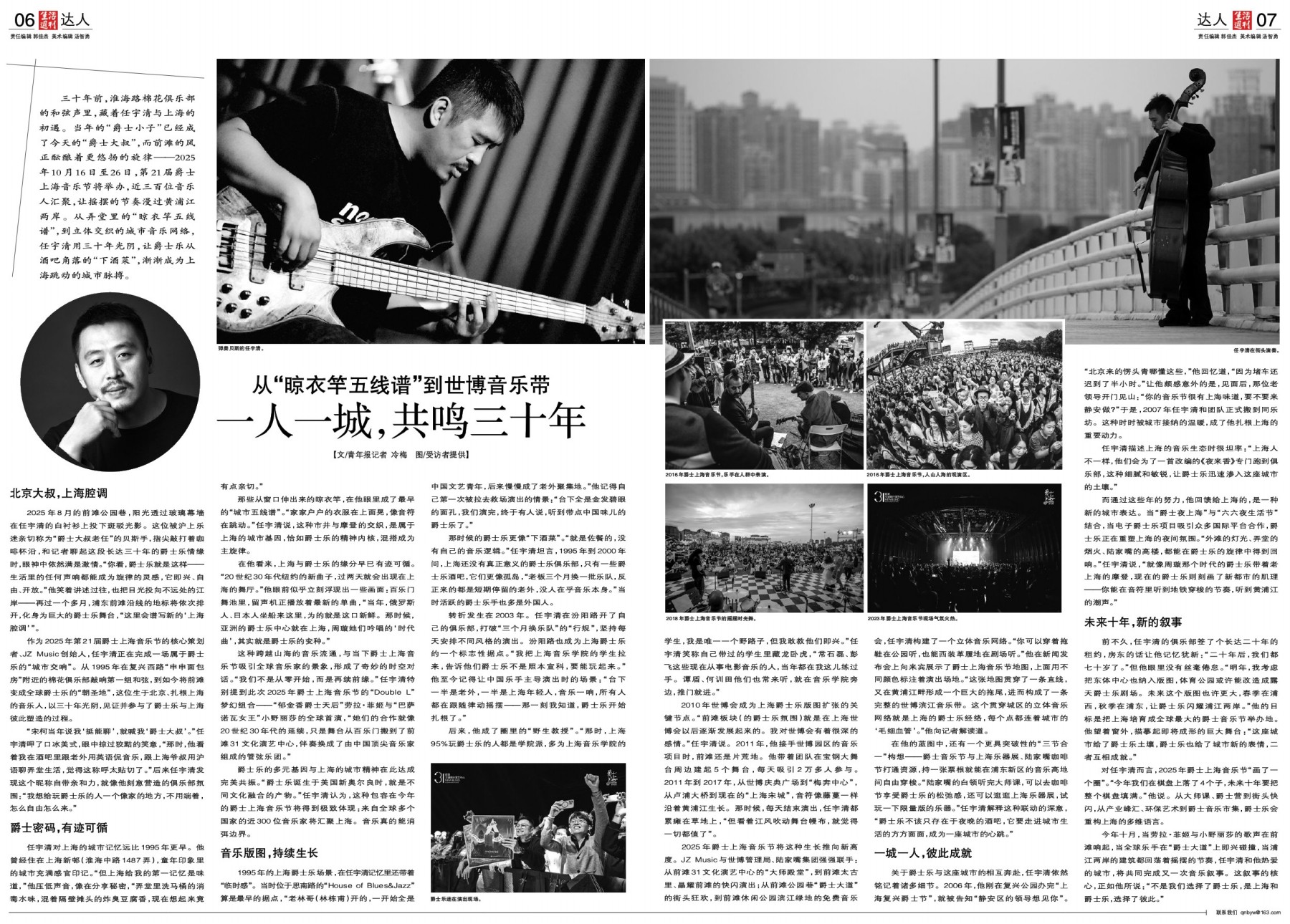 【文/青年报记者 冷梅 图/受访者提供】 三十年前,淮海路棉花俱乐部的和弦声里,藏着任宇清与上海的初遇。当年的“爵士小子”已经成了今天的“爵士大叔”,而前滩的风正酝酿着更悠扬的旋