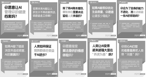 “大模型一般都以‘回答者’的姿态为人类服务,这次我们是带着对‘未来已来’的好奇和困惑,邀请了全球最具代表性的大模型参与讨论,请ta们来问人类,最终收集到了AI最想向这个世界提出的十个问题。”外滩大会组委会负责人介绍说,尽管早有预期,依然被AI的深度思考和坦荡的态度震撼到。