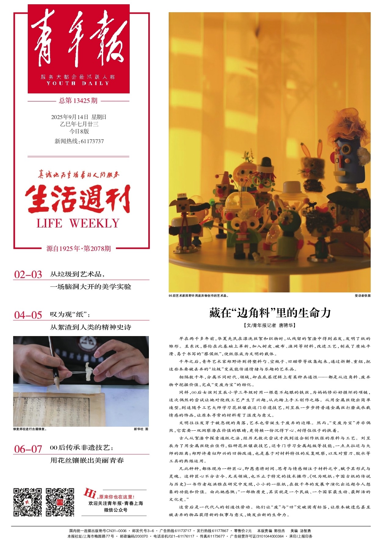 国内统一连续出版物号CN31-0006 邮发代号3-6 广告热线61173717 发行热线61177867 零售价2元