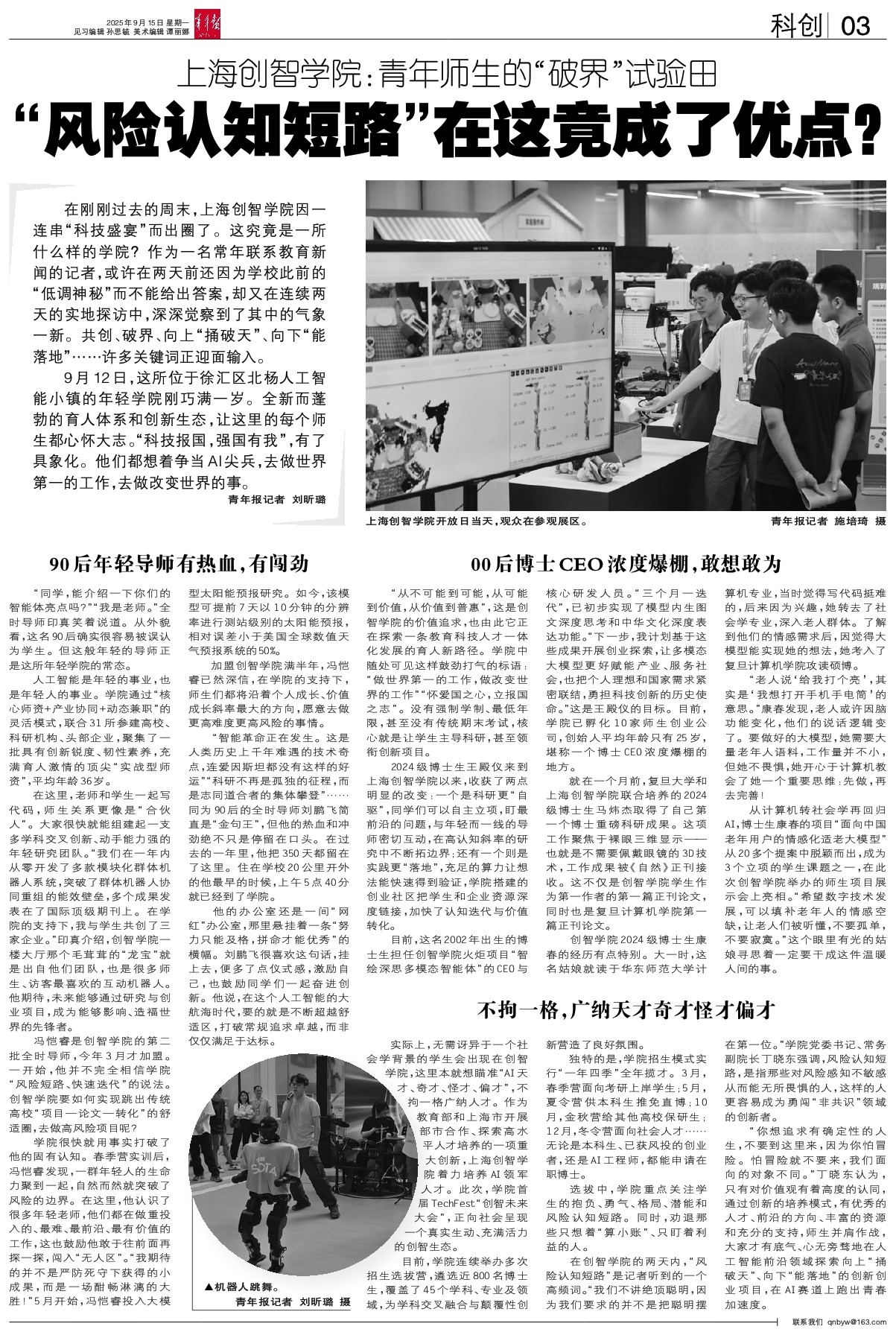 在刚刚过去的周末,上海创智学院因一连串“科技盛宴”而出圈了。这究竟是一所什么样的学院?作为一名常年联系教育新闻的记者,或许在两天前还因为学校此前的“低调神秘”而不能给出答案,却又在连续两天的