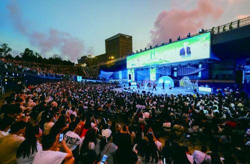 本报讯 上周末,2025“滴水湖青春歌会”暨青春上海大学生音乐节在滴水湖下沉式广场开唱,数千名临港五校新生用歌声和欢呼为这座“年轻的城”献上一场最燃的迎新礼。