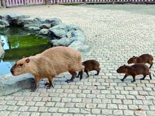 众多水豚宝宝已相继出生,以其“Q萌”的模样赢得了游客的喜爱。它们喜欢组队在水豚妈妈身边埋头“干饭”,有时还会主动凑到游客身边蹭一蹭、求关注。