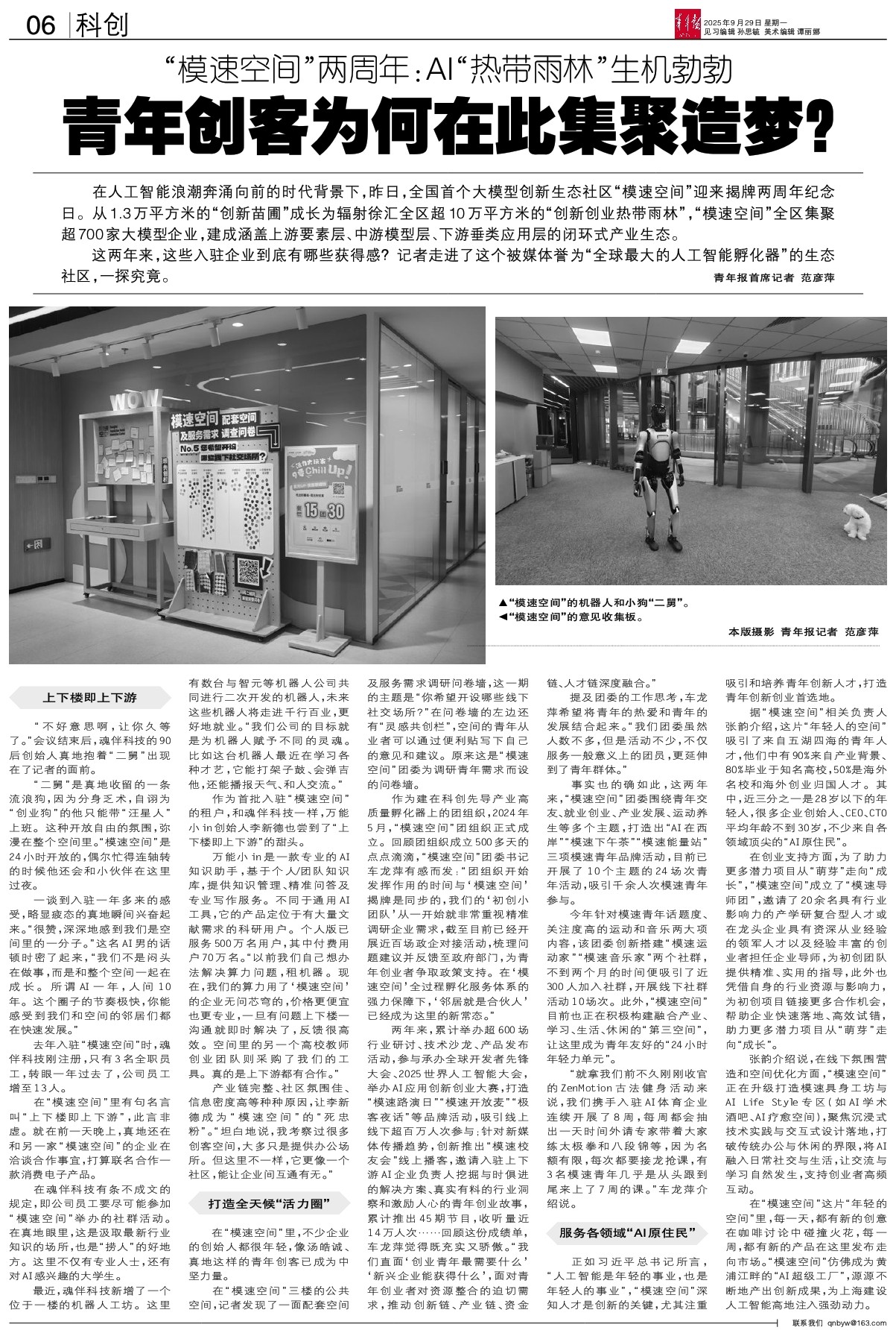 在人工智能浪潮奔涌向前的时代背景下,昨日,全国首个大模型创新生态社区“模速空间”迎来揭牌两周年纪念日。从1.3万平方米的“创新苗圃”成长为辐射徐汇全区超10万平方米的“创新创业热带雨林”,“