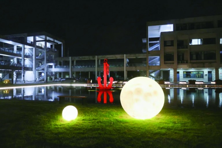 漫步上海对外经贸大学的校园,松江校区学院楼中庭悄然蜕变,幽静竹林与巨大的月球灯共同编织出校园“打卡秘境”,宛如一幅流动的山水画卷。夜幕低垂,太阳能灯温柔点亮小径,月球灯映照水面,倒影摇曳,虚实交错,宛若“镜中月”。这一刻,夜色洇染中庭,喧嚣归于宁静,中秋的氛围越发浓烈。