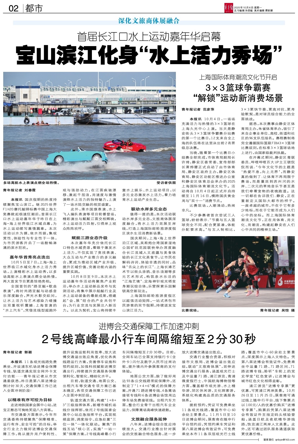 - 宝山滨江化身“水上活力秀场” 青年报记者 刘春霞 本报讯 国庆假期的热度持续聚焦宝山滨江。继2025世界F1H2O摩托艇锦标赛中国上海大奖赛掀起极速狂潮后,首届长江口水上运动嘉年华于昨日在上海·海上世界临江水域