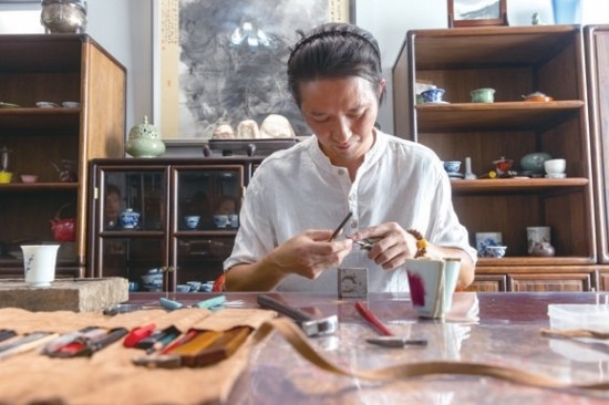 麻辉修复过一只一摔为二的青瓷盖碗,他用两枚精致的锔钉将碗牢牢锔住,而上下锔钉又与碗身的堆塑祥云纹饰形成一种呼应,相映成趣。麻辉会想象几百年后,后人看到自己修复的器物时会想什么,“我不在乎他们能否记住我的名字,只希望他们能透过钉子,感受到我们这代人对传统的认真。”对麻辉而言,每一件待修的器物都有“情绪”:摔碎的紫砂壶可能承载着主人十年的喝茶记忆,裂纹里藏着无数个午后的闲谈;缺口的瓷碗或许是奶奶传下来的,缺口处还留着旧时的饭香。“人会消失,但器物却能一直留存下去。我不只是在修瓷,更想让器物带着我们这代人的情感,再走得远一点。”
