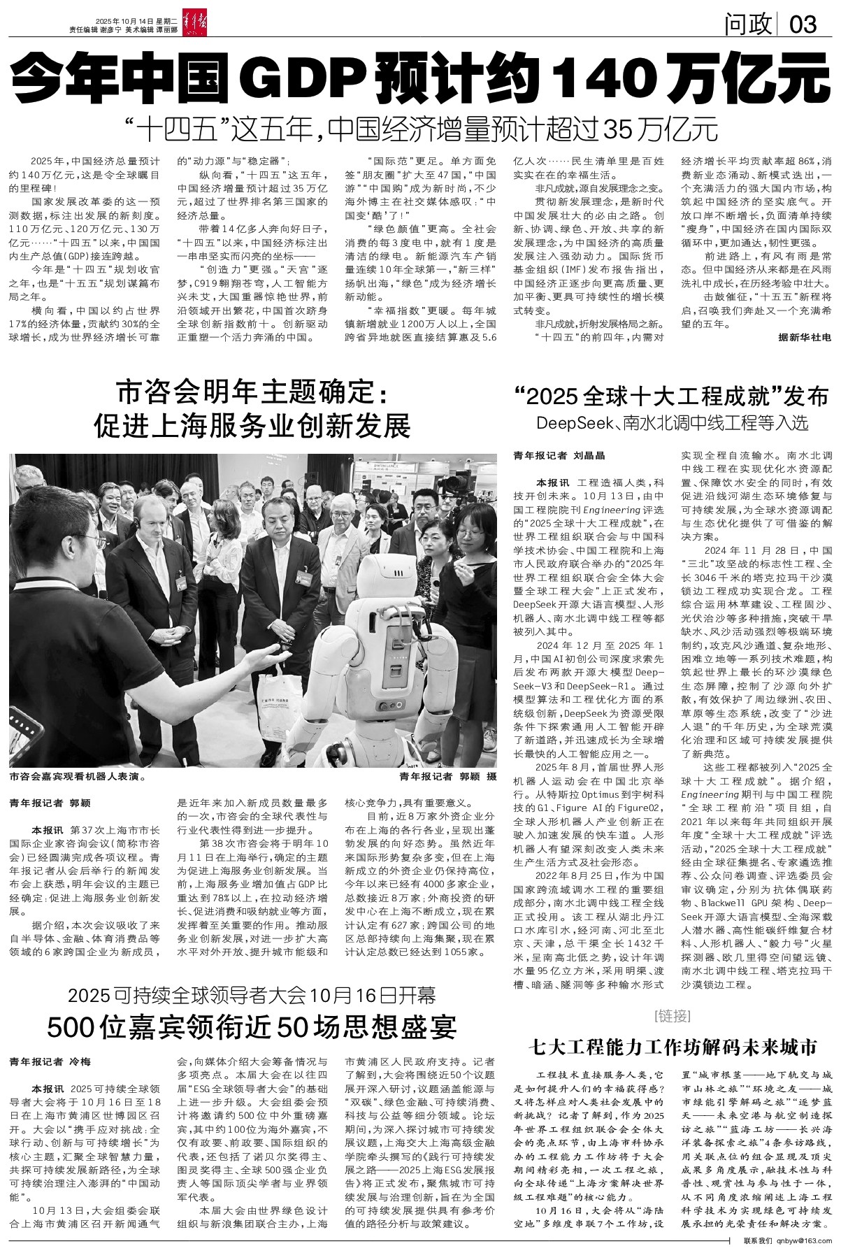 - “2025全球十大工程成就”发布 青年报记者 刘晶晶 本报讯 工程造福人类,科技开创未来。10月13日,由中国工程院院刊Engineering评选的“2025全球十大工程成就”,在世界工程组织联合会与中国科学技术协