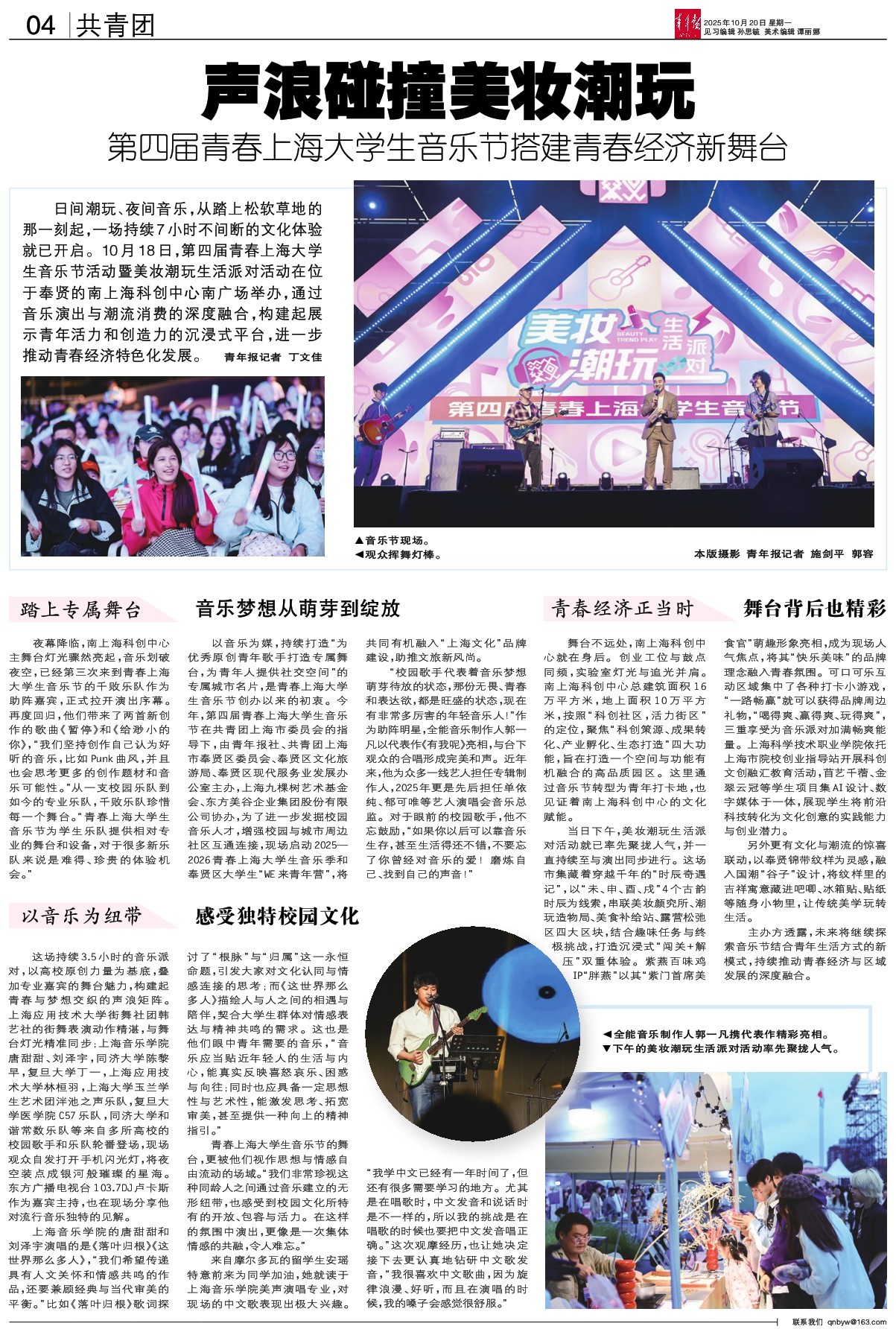 日间潮玩、夜间音乐,从踏上松软草地的那一刻起,一场持续7小时不间断的文化体验就已开启。10月18日,第四届青春上海大学生音乐节活动暨美妆潮玩生活派对活动在位于奉贤的南上海科创中心南广场举办,
