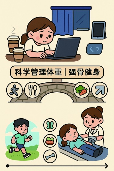 如何做好“健康体重 强骨健身”,中华医学会骨质疏松和骨矿盐疾病分会建议公众,一是保持适宜体重,定期监测体重、体脂率、肌肉围度等指标,根据身体变化调整饮食和运动计划,保持适宜体重;二是均衡营养;三是选择合适的运动方式,如可选择“有氧+力量+平衡”相结合的多种运动模式,增加肌肉力量,改善平衡能力;四是改变不健康生活习惯,戒烟、限酒,避免过量饮用咖啡、浓茶、含糖碳酸饮料等;五是高危人群早筛查早防治。