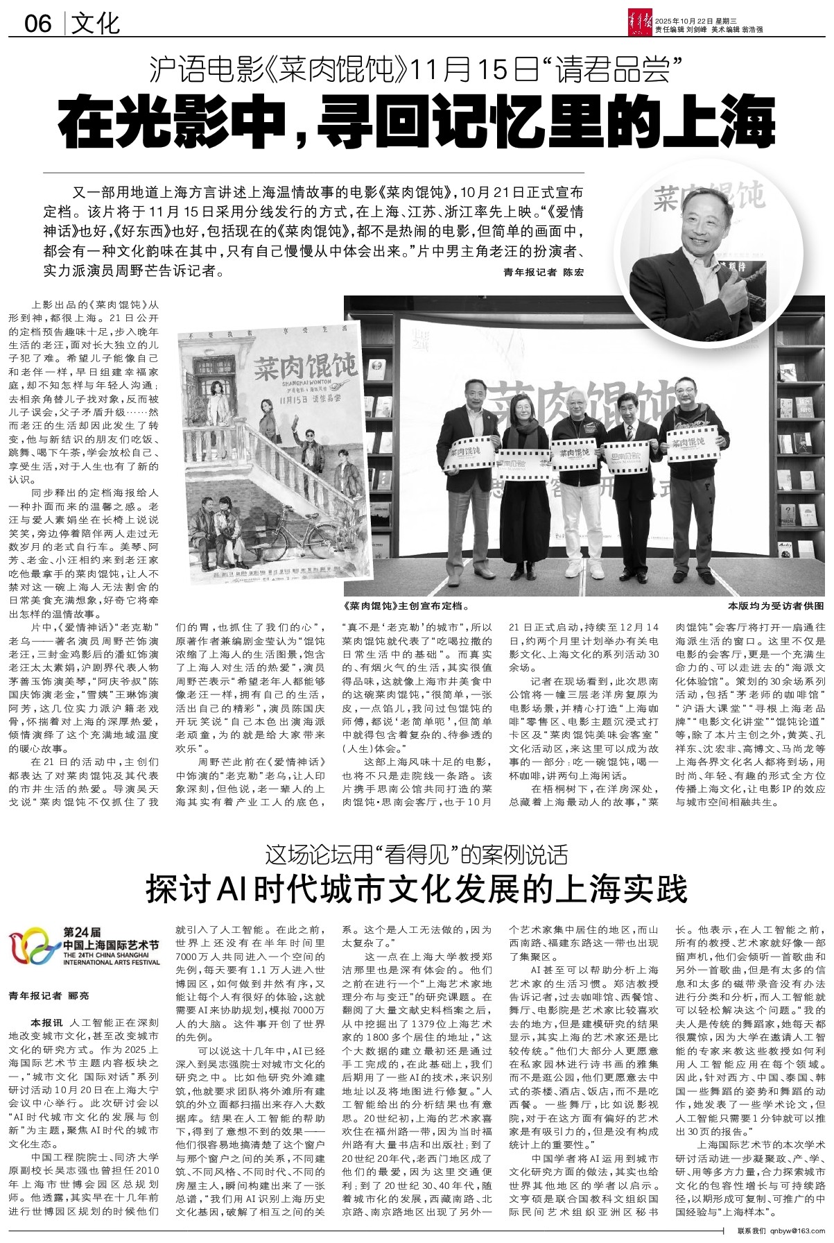 - 在光影中,寻回记忆里的上海 又一部用地道上海方言讲述上海温情故事的电影《菜肉馄饨》,10月21日正式宣布定档。该片将于11月15日采用分线发行的方式,在上海、江苏、浙江率先上映。“《爱情神话》也好,《好东西》也好,包括