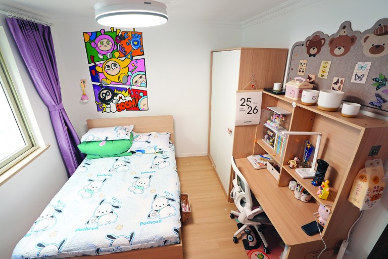 团虹口区委联动同济大学建筑与城市规划学院学生,深入家庭勘测沟通,精准把握需求。一对姐妹的共享卧室被设计为“双生成长空间”,以书桌作隔断,实现“一屋两境”。团闵行区委联合上海应用技术大学学生,以艺术重塑空间,携手孩子共创墙体彩绘,让小屋成为承载童趣、安放梦想的天地。徐汇区形成多套方案供选择,为低龄孩子打造明快环境,为多子女家庭提供独立空间。黄浦区应用三维扫描技术分区改造,配置自动调光环境灯。松江区充分尊重孩子意愿,定制设计,哪怕逼仄的一居室里住四口人,也通过通顶衣柜、书桌等最大化利用空间,营造温馨氛围。