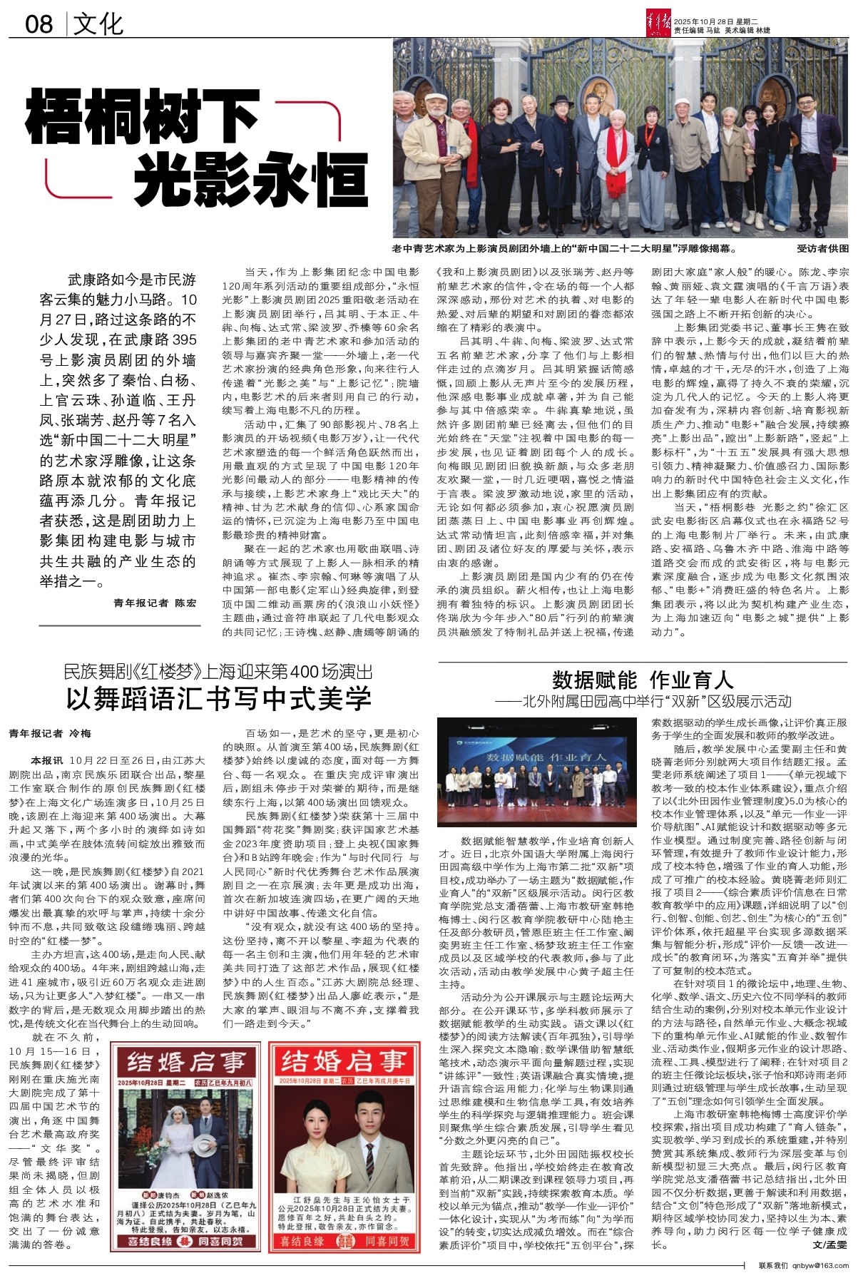 - 以舞蹈语汇书写中式美学 青年报记者 冷梅 本报讯 10月22日至26日,由江苏大剧院出品,南京民族乐团联合出品,黎星工作室联合制作的原创民族舞剧《红楼梦》在上海文化广场连演多日,10月25日晚,该剧在