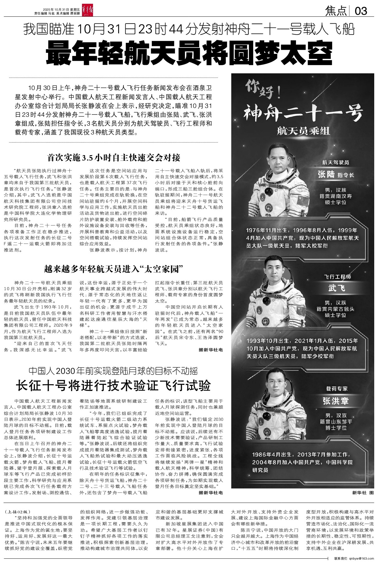 最年轻航天员将圆梦太空