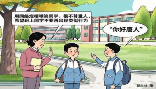 前不久,重庆一名初中老师在社交平台上发布抵制网络烂梗进校园的视频,引发广泛关注。这位教师在视频中称,班上有学生用“唐人”“你好唐人”等网络烂梗嘲笑同学,这种行为实在不妥,很不尊重人,希望班上同学不要再出现类似行为。