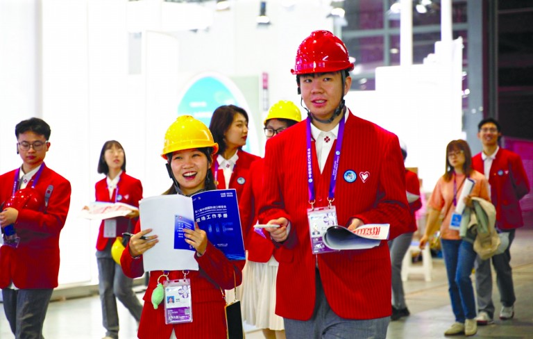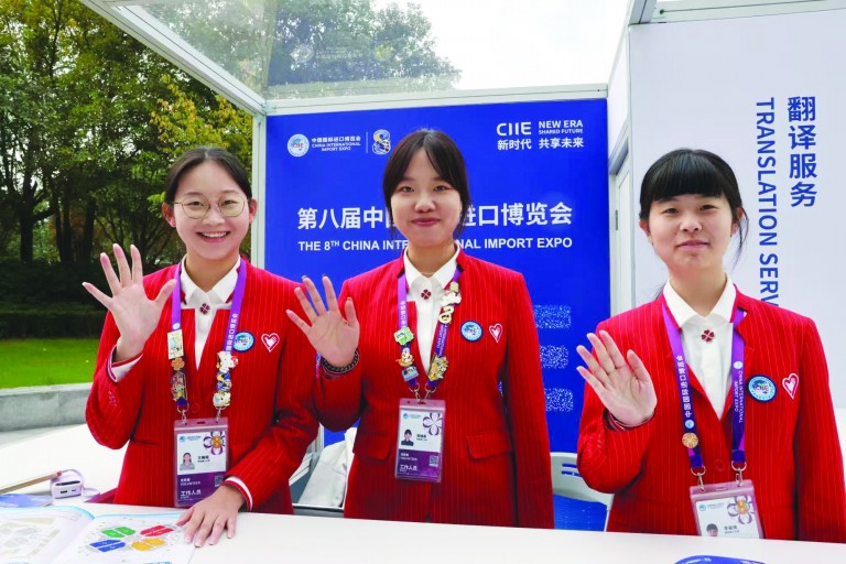 进博会之于“小叶子”,是一个赋能成长的实践课堂。在精心设计、环环相扣的“校级培训+市级培训+岗位实训”三阶段培养体系中,从基础知识、礼仪规范的全面夯实,专业知识、政策解读的深度拓展,到实战场景、应用规程的反复锤炼,这种递进式培养,让“小叶子”迅速成长。他们在繁杂的会务工作中,锻炼统筹协调能力;在与全球展商的交流中,提升跨文化沟通能力……正如一名“小叶子”所说:“在进博会,一天处理的问题比一学期的社团活动还多,但正是这种压力测试,让我们真正明白纸上得来终觉浅。”