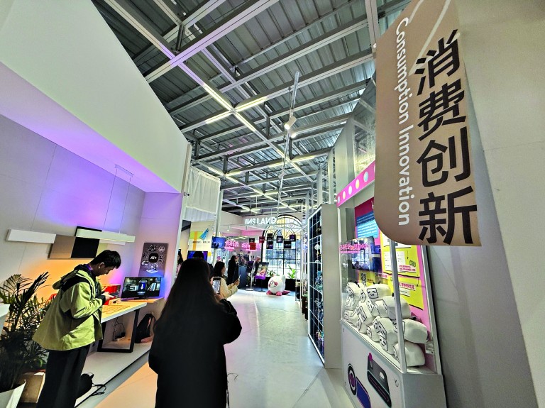 馆内分为品牌故事、消费创新、场景体验三大板块,50多个品牌、100多件新品齐聚。