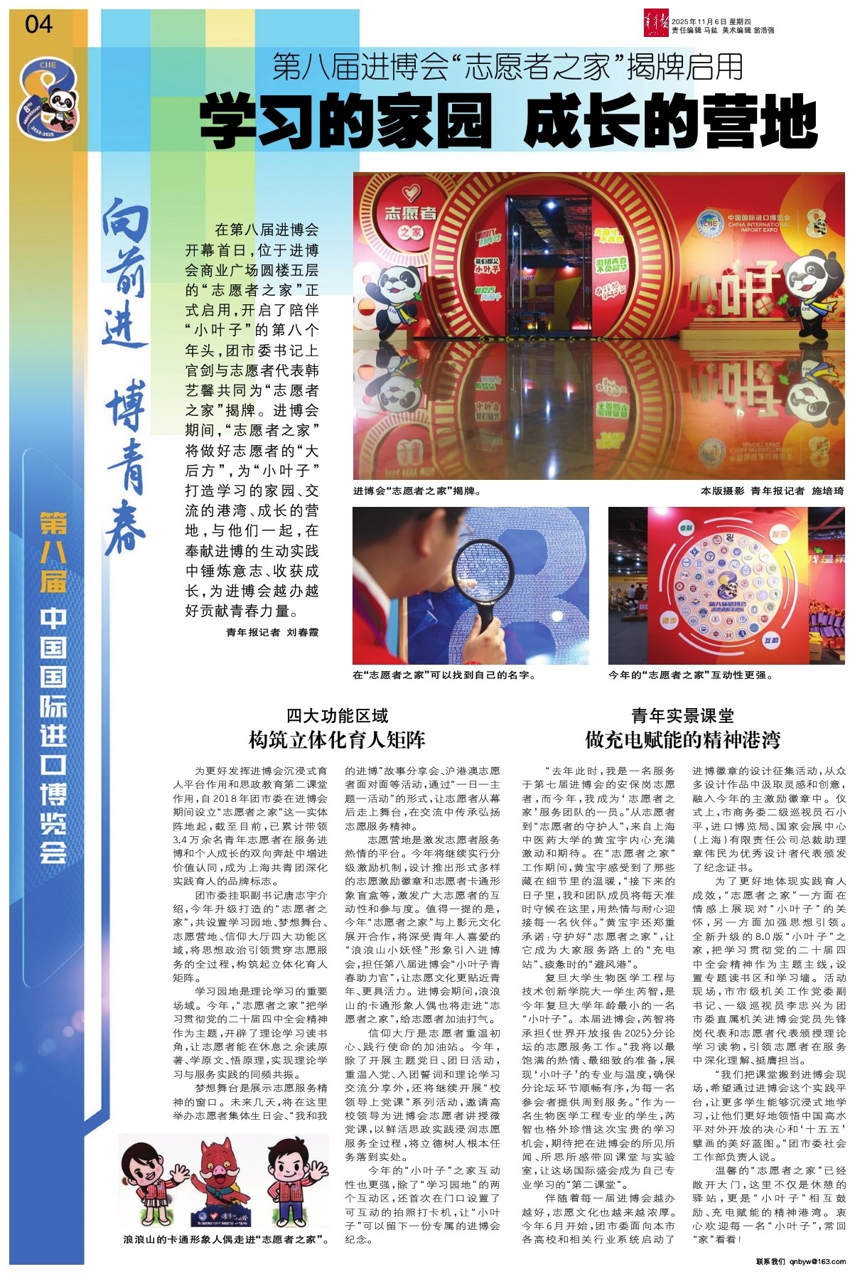 在第八届进博会开幕首日,位于进博会商业广场圆楼五层的“志愿者之家”正式启用,开启了陪伴“小叶子”的第八个年头,团市委书记上官剑与志愿者代表韩艺馨共同为“志愿者之家”揭牌。进博会期间,“志愿者
